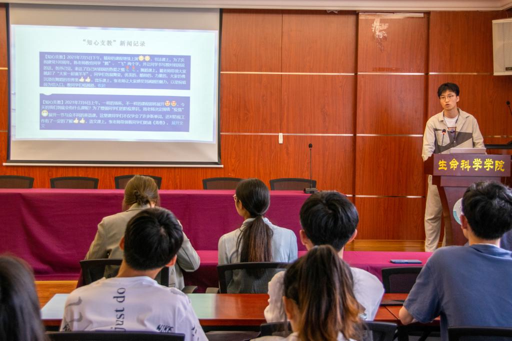 交流会上,四位实践队代表通过PPT、视频等形式,向同学们讲述实践故事,交流实践经验,分享实践心得,展现了生命学子在暑期社会实践活动中的精彩表现。随后,21级同学们积极踊跃地举手提问,代表们耐心认真地作出回答。参会的同学们纷纷表示此次活动收获颇多,对未来的实践活动满怀憧憬,跃跃欲试。