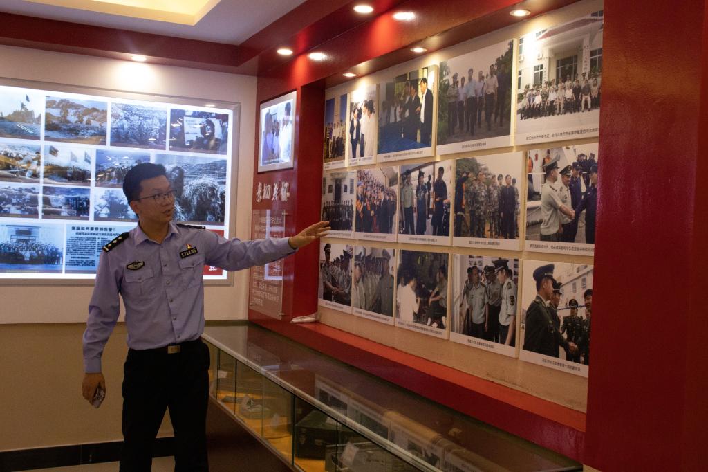 实践队随后参观了大陈派出所内的展览馆,了解了派出所的发展历程。大陈派出所成立于1955年4月,驻地为下大陈岛,辖区由2个有人岛和27个无人岛组成,面积14.6平方公里,海岸线长115.51公里;管辖3个行政村、1个居委会。辖区共有港口2个、避风点1个、码头18座,各类出海船舶90余艘,常住人口3900余人。作为岛上主要执法力量,大陈所不仅担负着辖区治安维稳和海防管理任务,还承担了交通管理、消防安全等工作。“苦干不苦熬,苦中有作为”。60多年来,大陈所传承发扬大陈岛垦荒精神,用扎实的工作为“小康的大陈,现代化的大陈”保驾护航。先后荣立集体三等功1次,20余次被省委省政府、省公安边防总队表彰为先进单位、先进集体、“双基达标单位”“学雷锋先进集体”“拥政爱民先进集体”“春运工作先进单位”,300余人次立功受奖。2018年12月,大陈所被椒江区委组织部、区委党校、大陈岛干部公司联合授予“大陈岛党性教育基地现场教学点”。