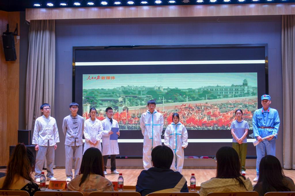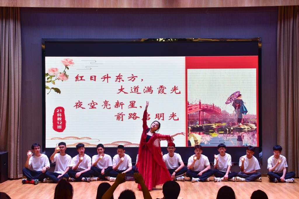 比赛现场,各团支部集思广益、群策群力,以朗诵、情景剧、幕布剧、歌舞结合等方式诠释本次大赛主题,展现各团支部独特的文化风貌。22生科1、2(含三台班)团支部以《青春的火焰》讴歌青春的斗志和奋斗的精神,22科教3、4班团支部以《星空浩淼,矢志不移》歌颂勇攀高峰、自力更生的航天精神,21生科1、2班团支部以《董存瑞舍身炸碉堡》情景剧再现英雄舍身救国的大义凛然;21科教1、2班团支部以《红日升东方》歌舞剧展现怀揣梦想和追求理想的青春风貌。比赛在观众们的掌声与欢笑声中落下帷幕。经过激烈的比拼,21生科三台班团支部《何为青年,青年何为》以其别具匠心的演绎形式摘得桂冠。