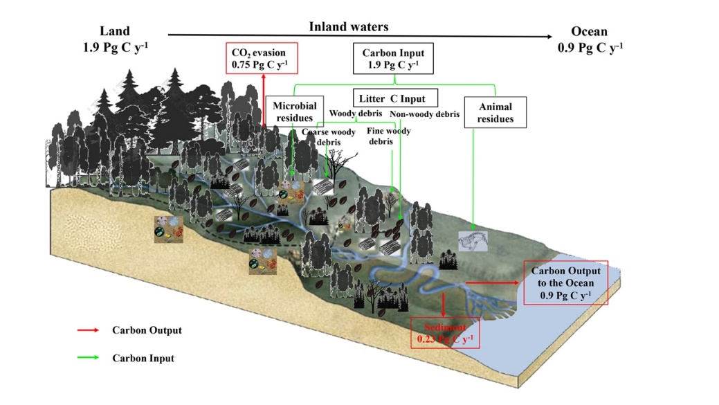 图1 内陆水生系统在全球碳平衡中作用的简化示意图