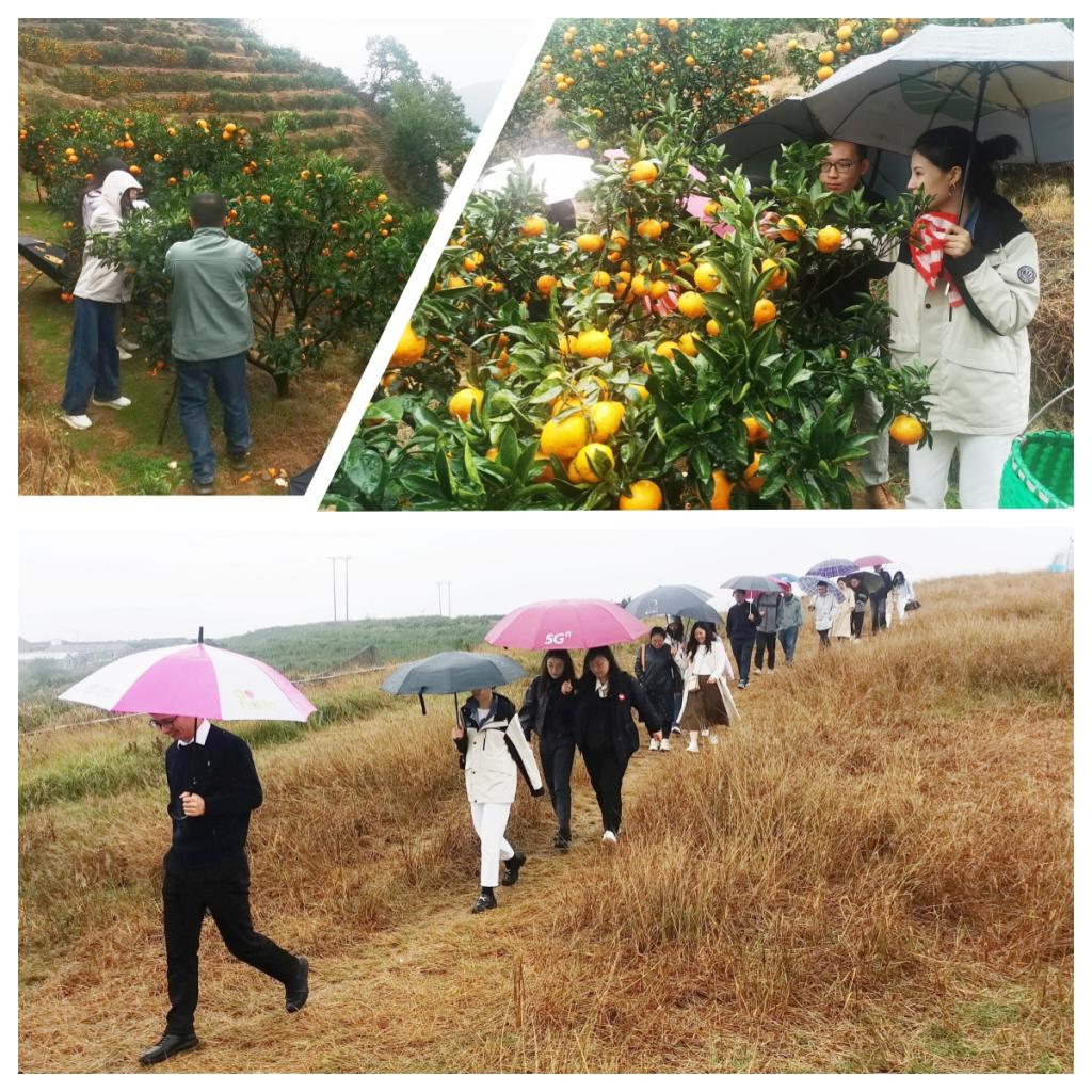 与会老师们一同前往临海市涌泉镇兰田山开展友谊户外活动,徒步冒雨感受来自台州“香格里拉”的独有风景,闻田间泥土的气息、触山间未散的薄雾、看乡村幽静的美景、吸充满富氧的空气,在互动与交流中体悟雨中漫步的悠然自得。恰逢蜜桔成熟季节,返程途中,集体向山脚的桔园进发,漫山遍野的桔林、宛如灯笼的桔子,让老师们瞬间化为果农,一手剪刀一手篮子,兴致勃勃采摘并分享属于自己的甜蜜果实,享受美好田园时光后,老师们带着丰收的喜悦踏上了归程。