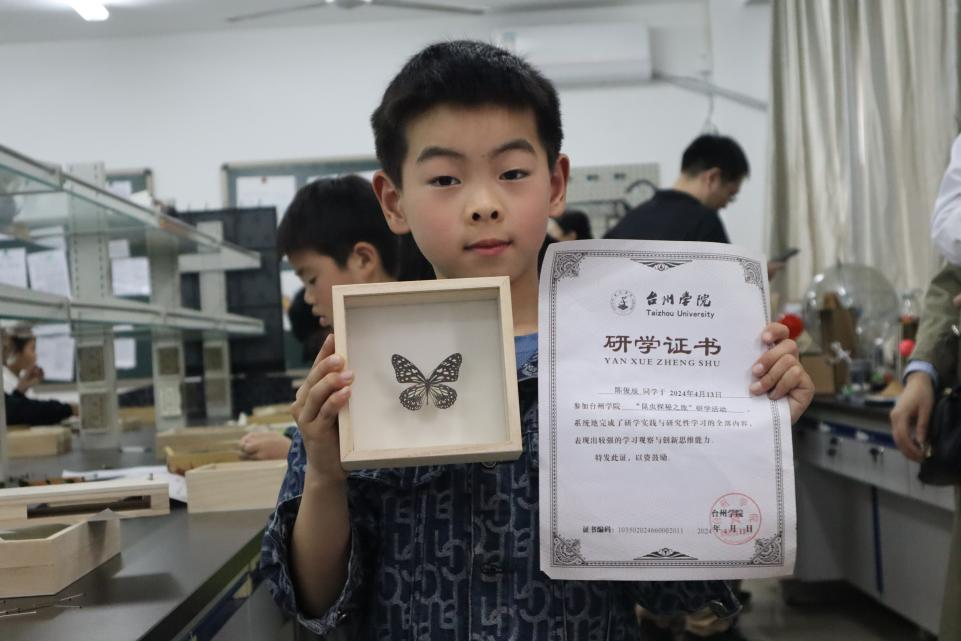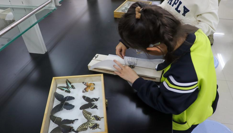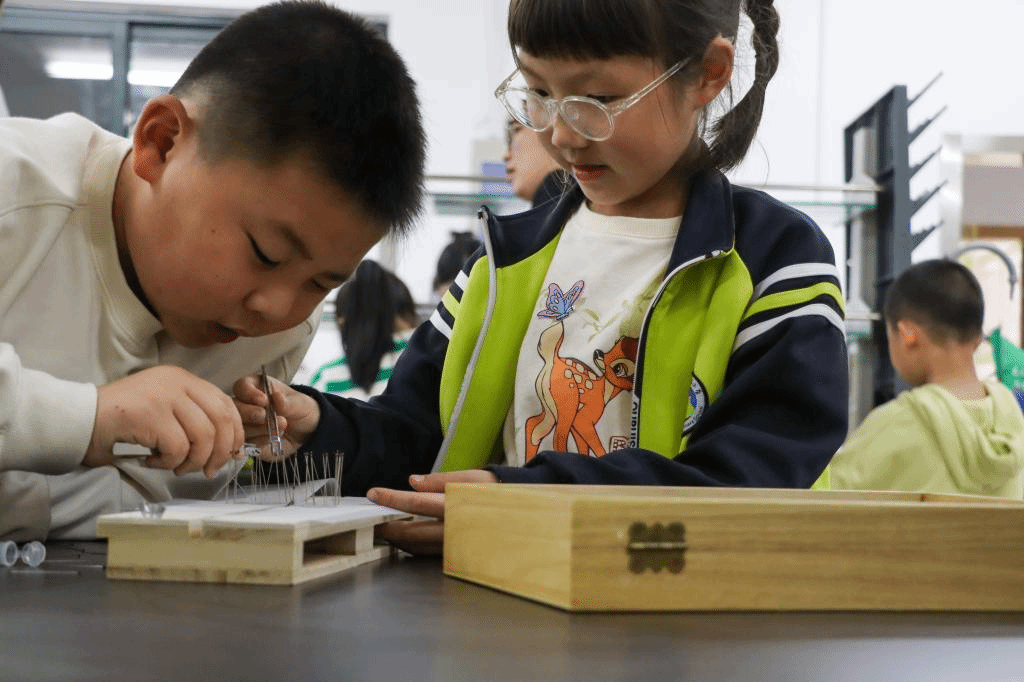 生态游园过程中,小朋友们跟随李月灵老师观察、认识校园植物,亲手采集植物并制作标本和工艺品,他们的作品可谓想象力丰富、妙趣横生。在蝴蝶标本制作实践环节,白义老师指导小朋友们亲自动手操作,学习使用展翅版、昆虫针、大头针等标本制作工具,细致地对自己手上的蝴蝶标本进行固定,轻轻地将硫酸纸覆盖在标本上,耐心等待标本烘干后,小心翼翼地将标本放入展示框,兴奋地向大家展示自己的作品。在分子探索营中,孩子们动手体验了DNA的提取实验。在示范操作的张慧娟老师身边,围满了一个个好奇的“小脑袋”。在那些平时很难见到的仪器边上,同学们还观察了进行基因扩增操作和凝胶电泳的机器。“太开心了,这次总算有机会到实验室亲手做实验!”、“原来,听起来很“神秘”的DNA提取并没有想像中那么难!”孩子们七嘴八舌地发表着对实验室的热爱,享受着科学探索的无尽乐趣。