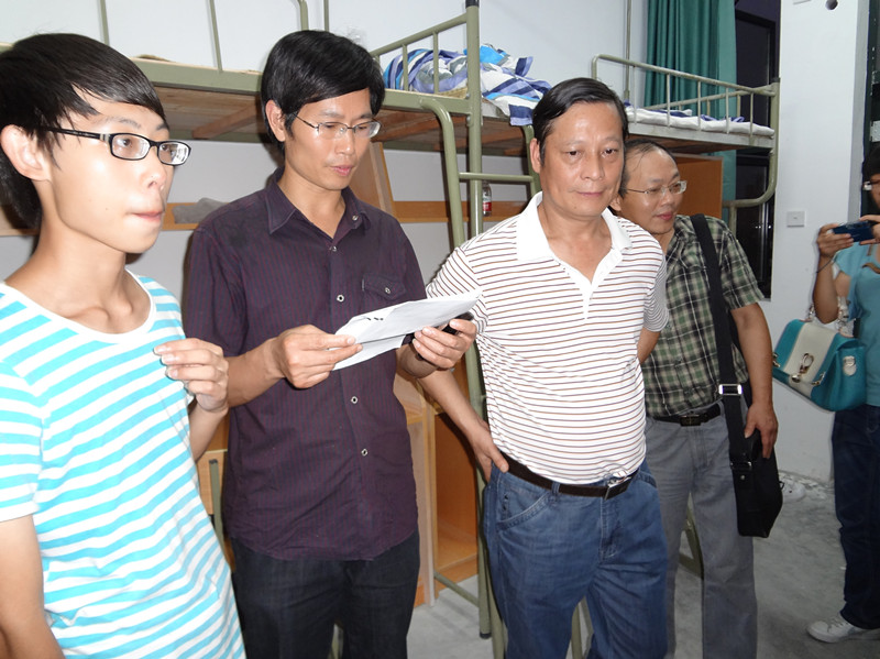 为使11级新生尽早适应老员工活,及时反馈当下存在的问题,9月4日晚,在结束一天的迎新工作之后,公司党委书记施时迪、副书记王金宝、副经理柯世省带领11级新生班主任,共同走访了公司部分新生寝室,为新生们送去关心与问候。