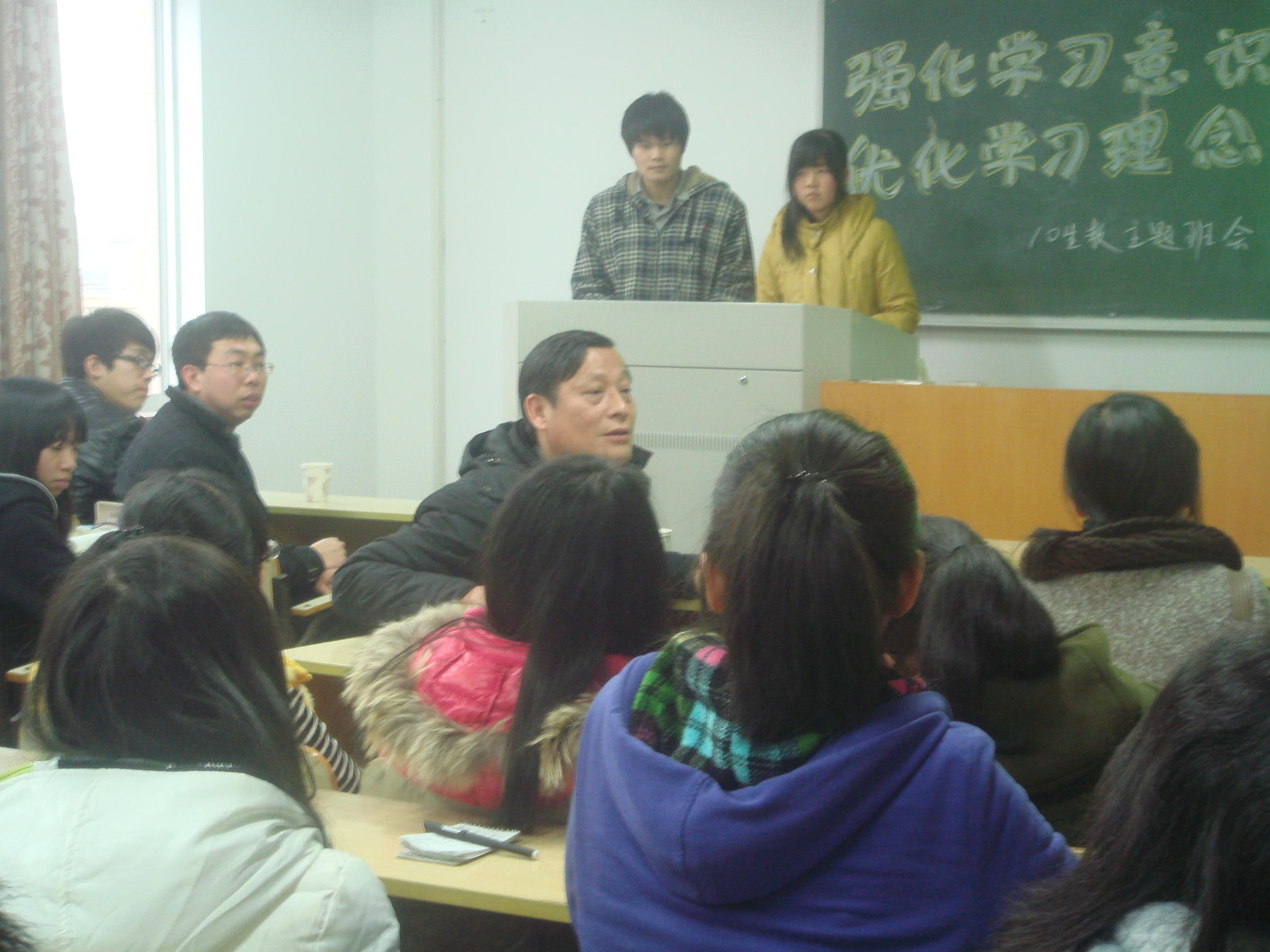本次活动采取分班的形式展开。52位教师根据任课和党员联系班情况分成15个组,参与到各班班会与同学们进行面对面的互动交流。主题班会上,各班围绕如何创建“学习型班级”,把“强化学习意识、优化学习理念”主题贯穿始终。各班以新颖独特的形式充分展现自班特色:有美好留恋的班级活动回顾、有学习优异员工的经验介绍、有精彩激烈的辩论比赛、有发人深省的经典小品、有分组讨论的思想交流……班会精彩纷呈,气氛热烈。