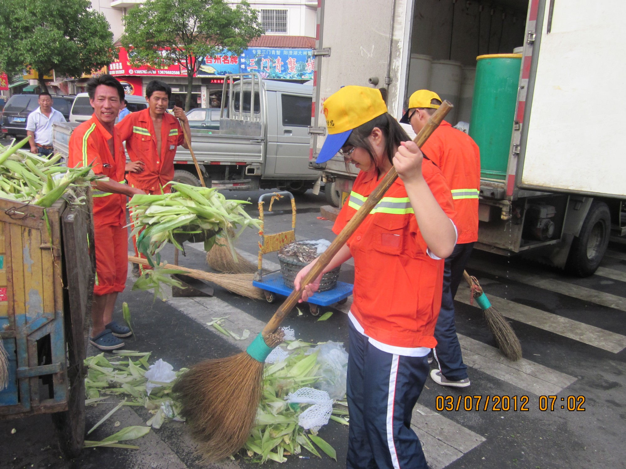 实践队将队员分5组开展体验活动,每组实践队员都有各自的体验活动项目,主要包括街道大扫除和路面保洁两个方面。经过一夜的喧嚣,街道上垃圾随处可见,其数量之多可谓无法形容,在长达4个多小时的大扫除之后,街道及路面焕然一新,这不乏使得初次体验环卫工人生活的实践队员们从内心深处感到无比自豪,但更让队员们刻骨铭心的是通过体验让同学们真正的体会到环卫工人的含辛茹苦及默默无闻。体验活动结束后,队员们困意顿起,疲惫不堪,但想起起早贪黑、来去无踪的环卫工个人生活,每个人都不禁精神抖擞,对环卫工人的敬佩之意也油然而生。