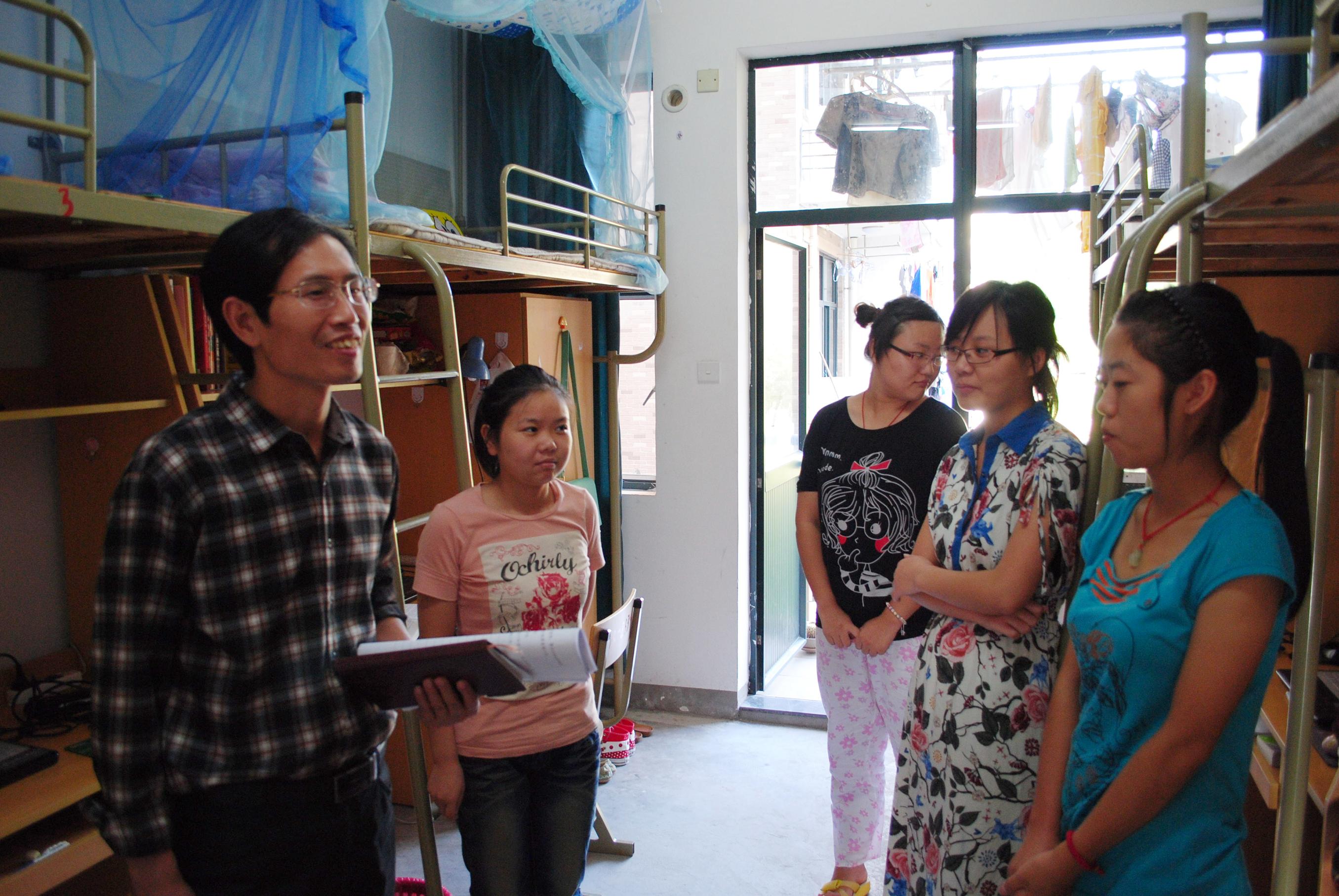 会后,在王金宝副书记及柯世省副经理的带领下,广大教职工分别深入到各自分管负责的寝室。他们认真查看寝室的卫生情况,看到铺着地毯、整洁干净的寝室后感到非常高兴,对同学们为建设文明寝室而付出的努力予以了充分肯定,在与同学们的交谈中,王副书记希望同学们能够再接再厉,继续保持这种良好的寝室环境,并积极努力学习,推动公司的学风建设。