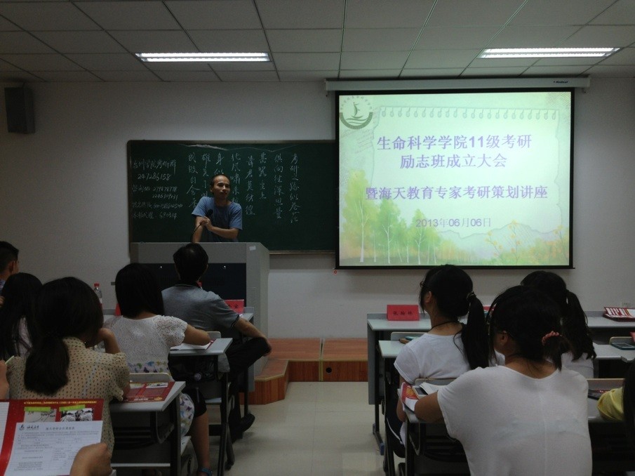 为了让11级考研的同学早日明确目标,并付诸行动,意昂特成立考研励志班,并于6月6日下午召开11级考研励志班成立大会,会后邀请海天考研辅导专家为同学们作考研策划讲座。党总支副书记王金宝,11级考研励志班班主任王江博士出席成立大会,海天考研两位老师出席讲座。