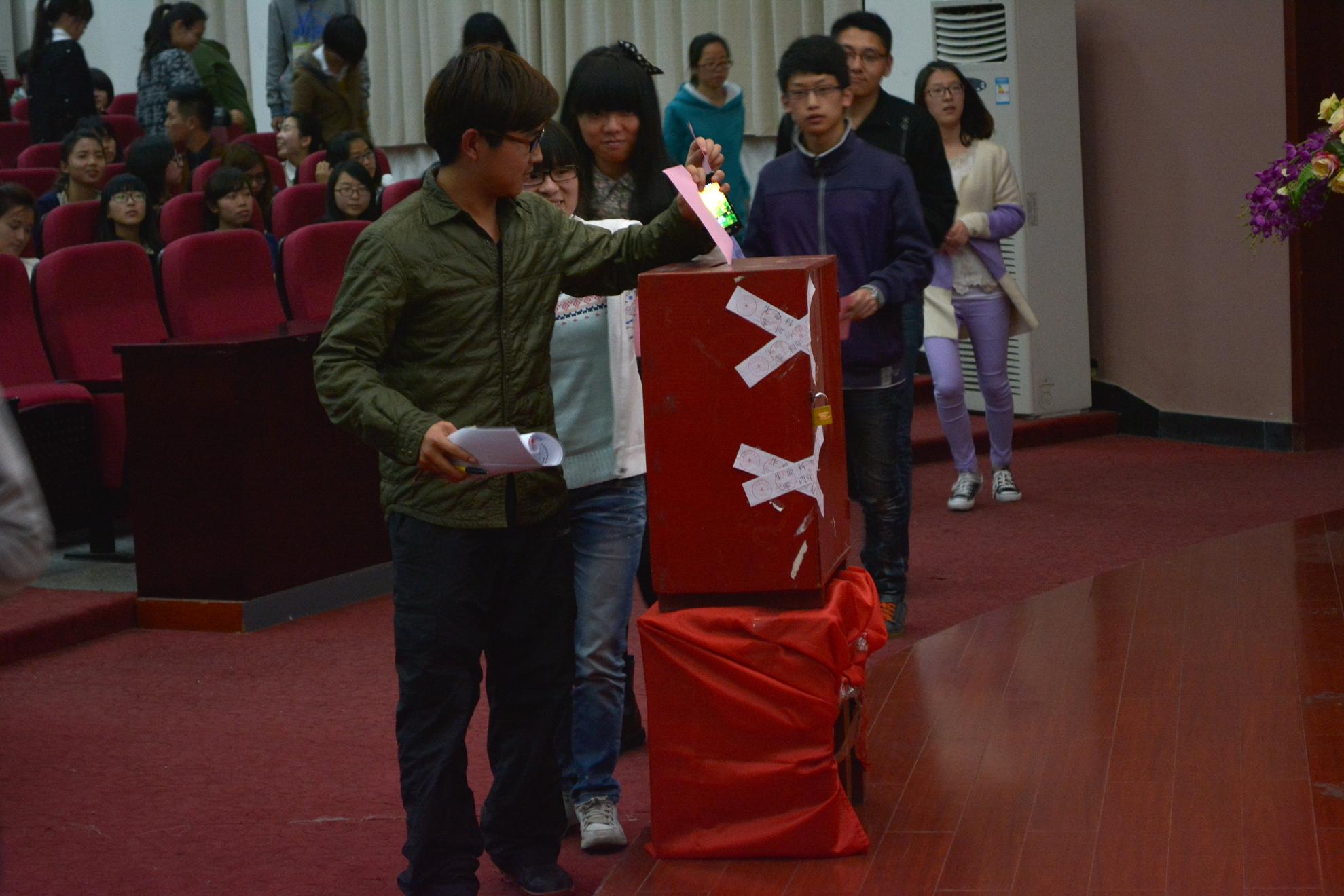 杨启富副书记发表讲话,他首先对开展“十佳老员工”评选活动的意义做了精炼阐述,并对大会筹备委员会的辛勤工作表示感谢,同时,杨书记希望经层层筛选、脱颖而出的20位优秀学子能展现风采,再创佳绩,也希望与会的173名代表能正确履行职责,投出庄严的一票。