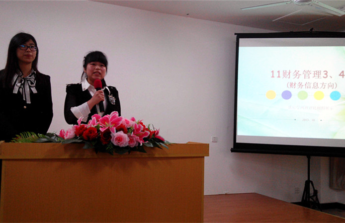 会上,校优秀班主任齐鑫老师首先就如何有效开展“学习型班级”建设作了典型发言,跟大家一起畅谈工作感受,分享管理经验。接着,11生物教育1、2班和11财务管理3、4班的同学代表,用精美的PPT,精彩的演讲,分别从民主制度建设、班级文化建设、班风学风建设、团队凝聚力建设等方面,以“累累硕果展学风”、“班级建设创学风”、“特色工作促学风”,向大家充分展现了“校特优学风班”的风采,其中许多做法和举措,比如,班干部工作例会、茶话班务制度、结对帮扶活动、学习互助小组等,很值得学习与借鉴。与会同学还就“如何提高考试通过率”、“如何有效开展党员干部联系寝室”等问题进行了互动交流,现场气氛热烈而浓厚。另外,陆超超同学代表竞赛班级作了表态发言。