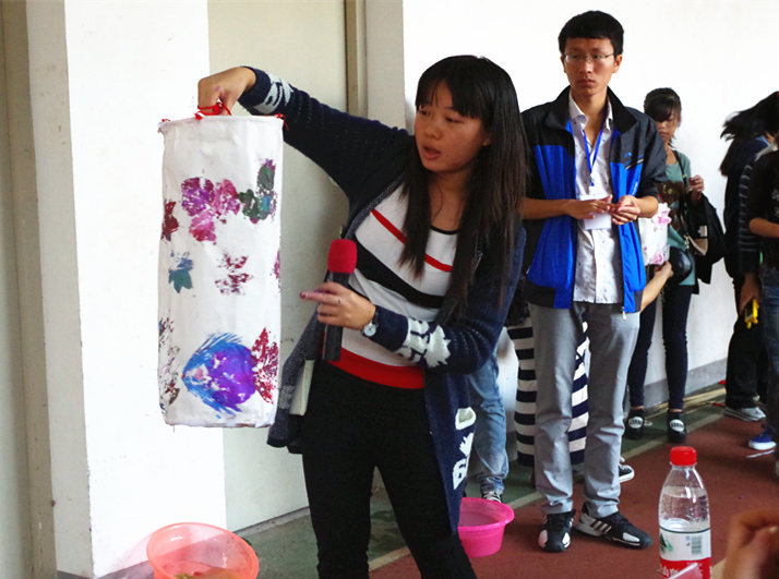 这项活动得到广大同学的积极响应,共有73支队伍报名参赛。本次大赛分为“寻找校园植物”、“花灯拓印制作”和“作品解说”三个环节。在“寻找校园植物”环节中,各组成员为争分夺秒地寻找到对应的校园植物,并收集落叶。在制作环节中,组员们合理的利用落叶、裁剪宣纸竹条、调配颜色、搭置花灯骨架……,整个制作过程有条不紊。每位选手信心十足,紧贴大赛主题,独具匠心,结合梅、兰、竹、菊等具中国文化元素于花灯之中。绿色的基调,象征生命的律动;五色的花朵,象征生活的多姿多彩;子母花灯,更是象征着家的温暖……各式叶子印痕组合在一起,拓印出曼妙的图案,将选手们的奇思妙想展现得淋漓尽致。花灯造型各式各样,精彩纷呈。最后,选手们还对花灯进行了展示讲解,经过一番激烈角逐之后,8号作品“芦舞娇荷”以原生态芦苇为流苏,立体花朵为灯饰,凭借其新颖的构思、创新的造型获得第一名。