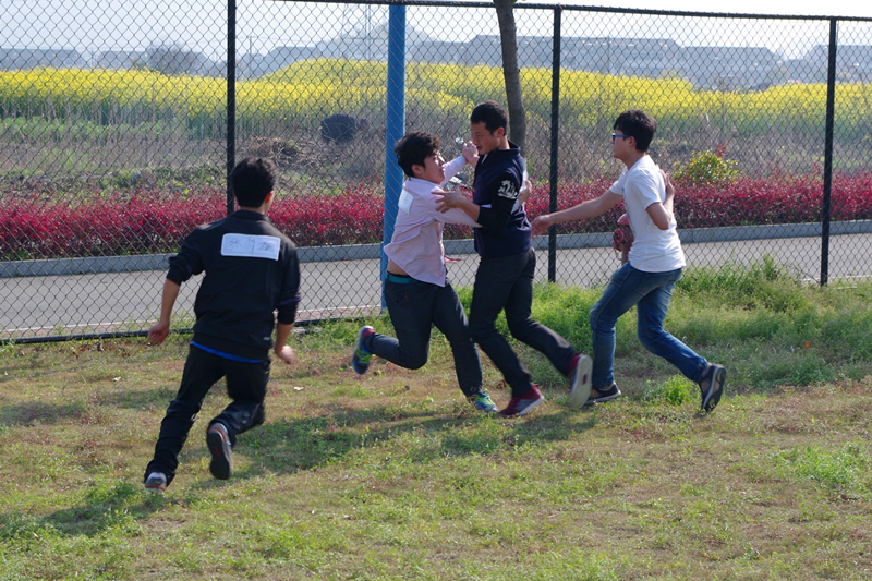 班级同学分成10个参赛队参加此次校园趣味活动。活动共设抬花轿、神射手、指压板跳短绳、脚脚相传、撕名牌五个环节。每一个活动既可以提高同学们动手能力,又可以锻炼同学们在工作中团结协作的能力。从趣味活动开始到结束,同学们彼此加油、欢呼、喝彩,现场欢声笑语此起彼伏,这是智慧和体力的角逐,更是团结和协作的比拼。在最后进行的撕名牌大赛中,同学们像“狼”一样厮杀着,中途虽有队员摔倒在地,但是为了团队的荣誉他们毅然爬起,奋勇拼搏。