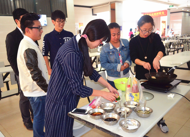 大赛分设以豆腐为核心原料的创意组和不限食材种类的传统组,共吸引52个团队参赛。比赛伊始,各个参赛选手们精神饱满,摩拳擦掌,迫切地希望用自己的双手烹饪出一道道精美的佳肴。煎、炒、烹、炸,现场弥漫着诱人的香味,传统组的味道令人印象深刻,创意组的奇思妙想令人拍手称绝。选手们还对烹饪的菜品进行解说,给佳肴增添一份人文和情感。色彩鲜明的《辞冬迎春》述说了春天的朝气;逗趣可爱的《醉酒姑娘》描绘田园的风趣;怪诞张扬的《冰雪奇缘》讲述了生活的浪漫。厨艺大赛现场热闹非凡,吸引了众多同学围观。专业评委从色、香、味、形等多个方面对参赛作品进行考核。此次比赛还增设微博评选阶段,最后,综合专业评委评分和网络票选,14环境工程专业的徐沛东等同学凭借一道《菠萝菠萝米》获得评委青睐,在传统组脱颖而出,获得冠军;13生物教育的毛七梅等同学的《醉酒姑娘》摘得创意组桂冠。