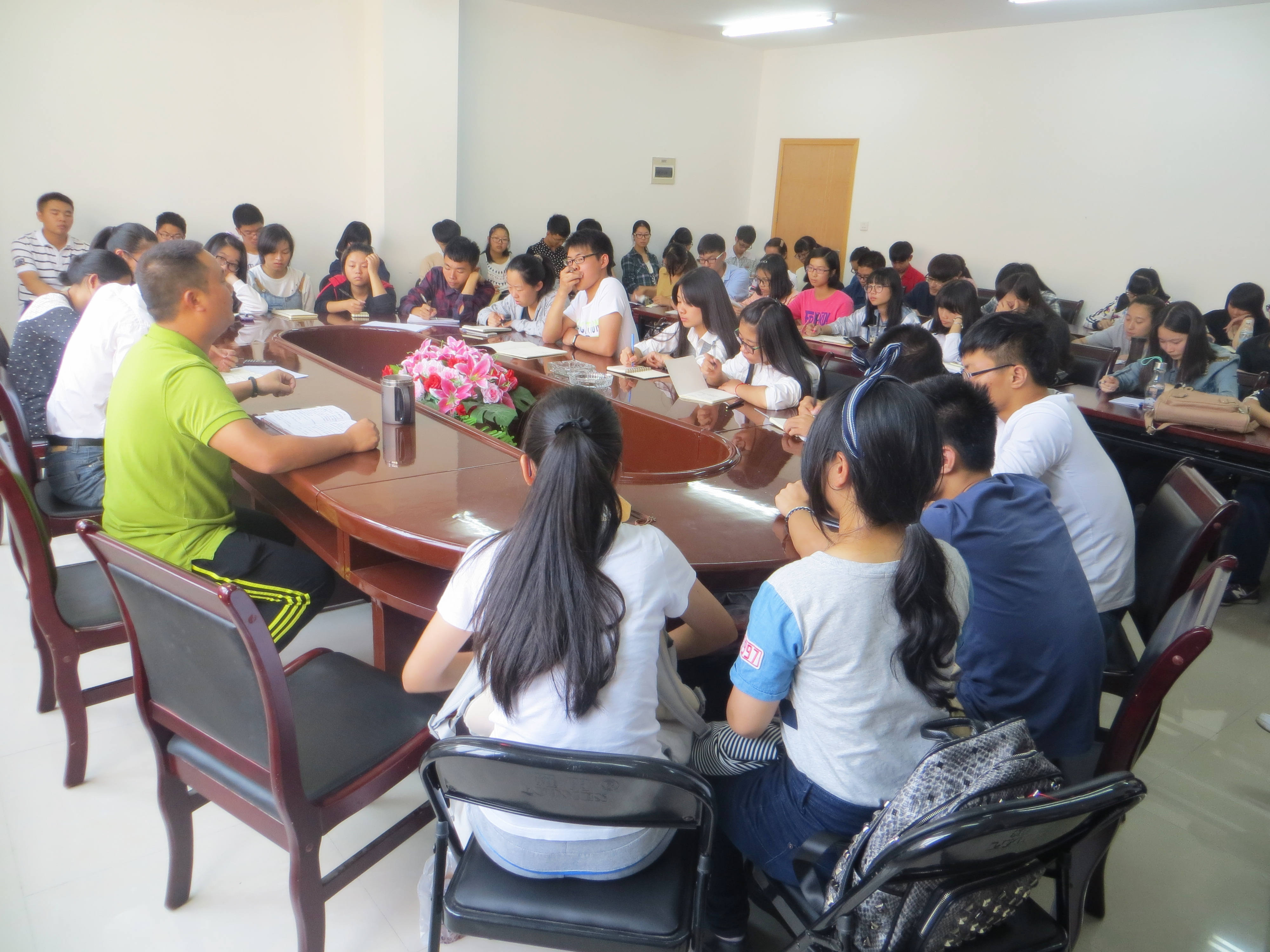 杨书记首先对新当选的各专业班委表示祝贺,围绕“如何做一名合格的班干部”、“班级建设中出现问题如何解决”以及“如何将班级发展与个人成长联系起来”三个问题,从班干部自我管理、团结协作、班级管理方法等方面展开交流。就“如何有效管理班级”这个问题上,杨书记提议各班委通过创建独特的班级文化、成立学习互助小组、建立班委联系寝室制度等方式培养班级同学集体荣誉感,增强班级团队凝聚力,打造学习型班级。最后,杨启富副书记提出打造一个和谐不矛盾、不推卸责任、做事巧干而不蛮干的班委团队的希望。