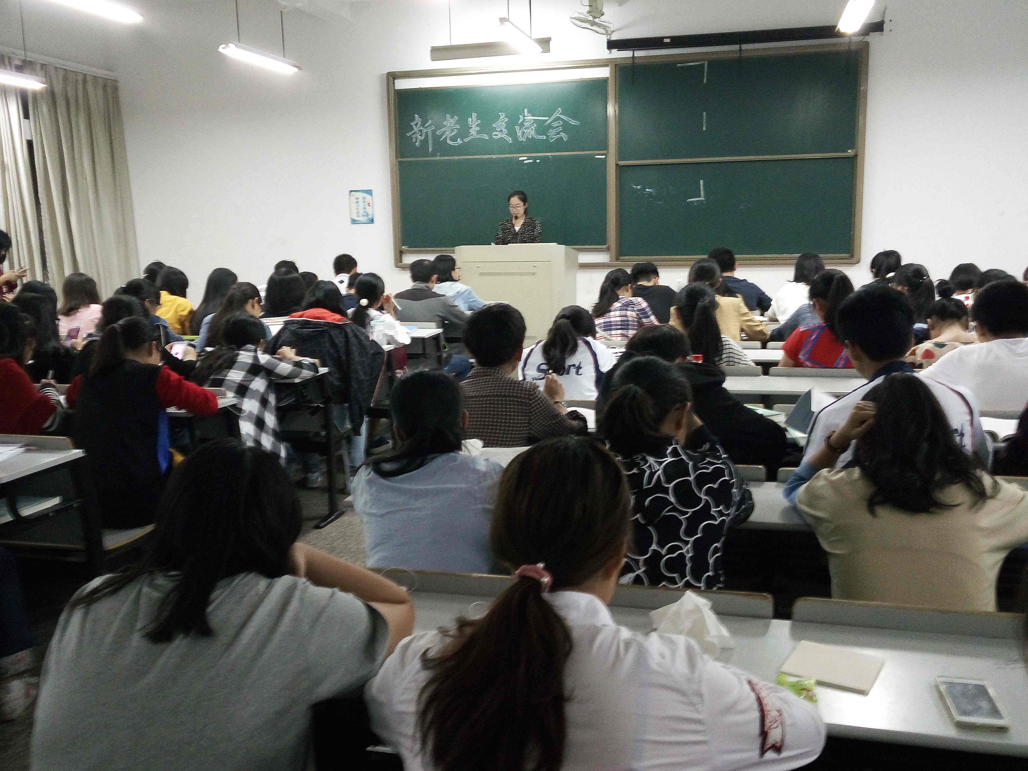 老生代表就学习方法、综合考评说明、评奖评优、公寓生活、社会实践等基本方面,结合大学现状与自身经历,分享了他们的学习生活趣事和对未来的展望与思考。老生们尤其强调明确目标是最重要的,是老员工活开始的第一步,并且指出,能力与成绩并重,在保证学习的前提下,可以积极参加课外活动来增长见识、增强能力。15级新生们仔细聆听,认真记录,同时也就14级老生的发言提出了自己的疑问。针对各类问题,老生们现身说法,耐心解答。现场气氛融洽,时不时传出的掌声。15级新生们在学习、生活、工作等方面得到了14级老生的诸多指导,同时树立更明确的目标和更远大的理想。