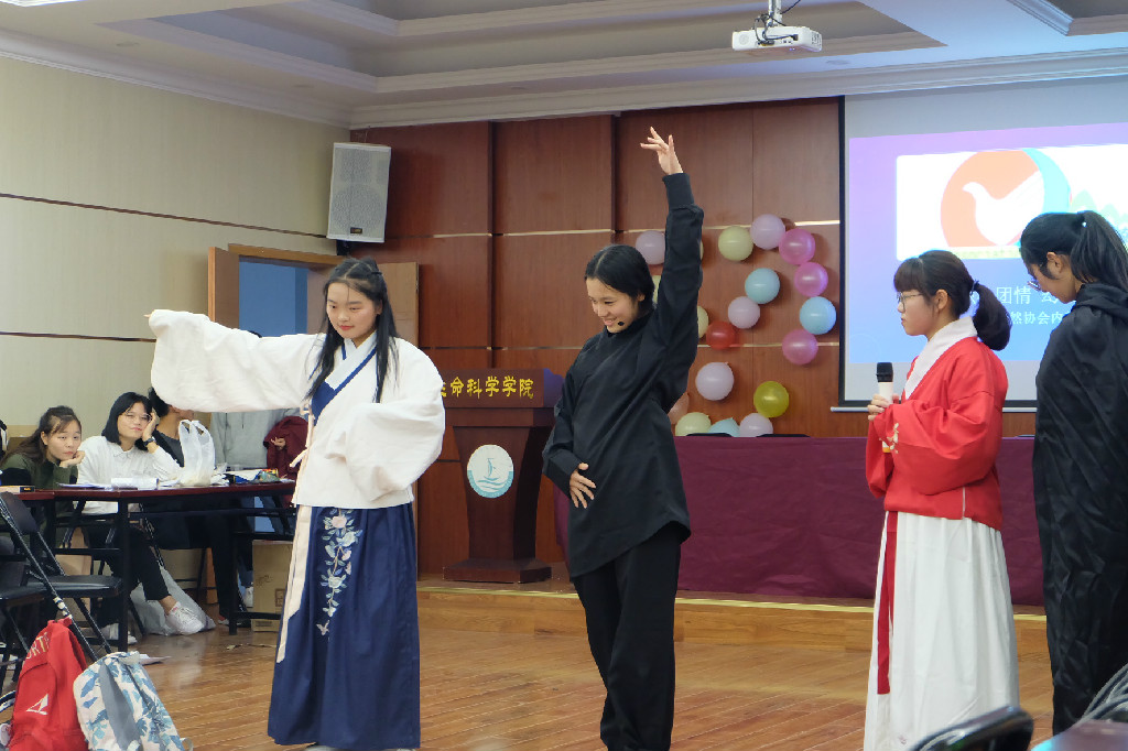 乐起舞动,人协组织部带来的舞蹈“告白气球”作为开场节目调动全场气氛,无不感染在场的观众。主持人以饱含热情的语调为联欢致开场白,表达了对到场会员们的欢迎,并宣布了“交织社团情,幻化青春梦”内部联欢正式开始。随后各个节目轮番登场,《歌曲串烧》《记得》《一笑倾城》等歌曲引得在场观众跟唱;小品《白蛇前传》使现场洋溢着欢声笑语,《惊鸿舞》更是让人眼前一亮,小品《小姐与丫鬟》、相扑服舞蹈《Hips Don’t lie》更是逗得大家捧腹大笑。游戏与节目穿插进行,现场气氛活跃,成员们积极参与。还有令人激动的抽奖环节,再次点燃了现场气氛。联欢活动后,到场成员一同合影留念。