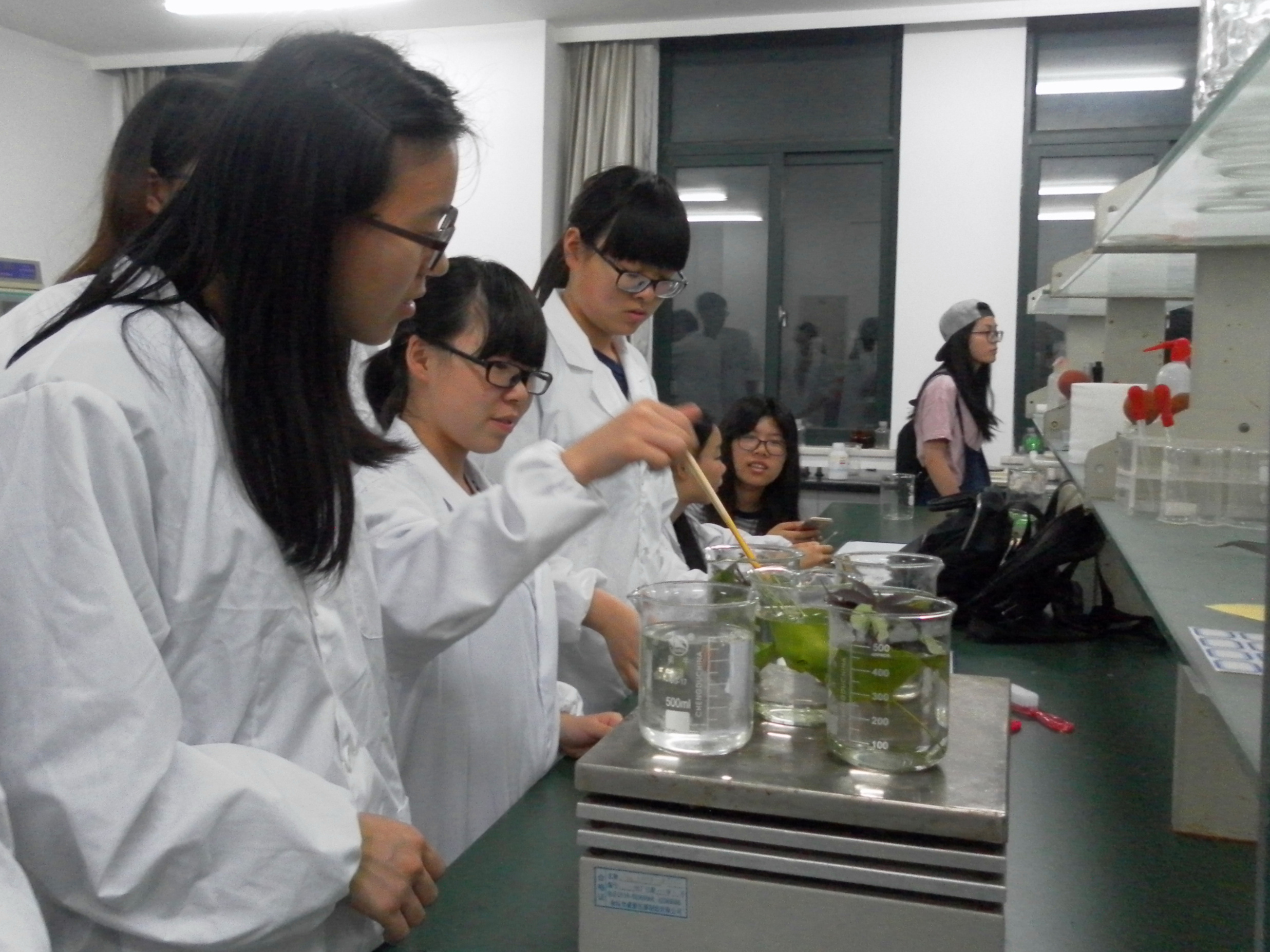 参赛选手们在实验室里按照操作流程认真仔细制作,氢氧化钠加热腐蚀各种植物叶片、刷洗叶片除去叶肉、化学试剂漂白、醋酸洋红或亚甲基蓝染色,再进行固定、压干、定型……经过一道道程序后,一张张叶脉书签制作完成,或浅红或淡绿显现美感。不仅如此,选手们还结合书法、绘画等元素,巧妙利用叶脉形状为书签绘制了独特的背景装饰,这不仅增加作品的艺术性,更使叶脉书签有了更好的视觉效果。