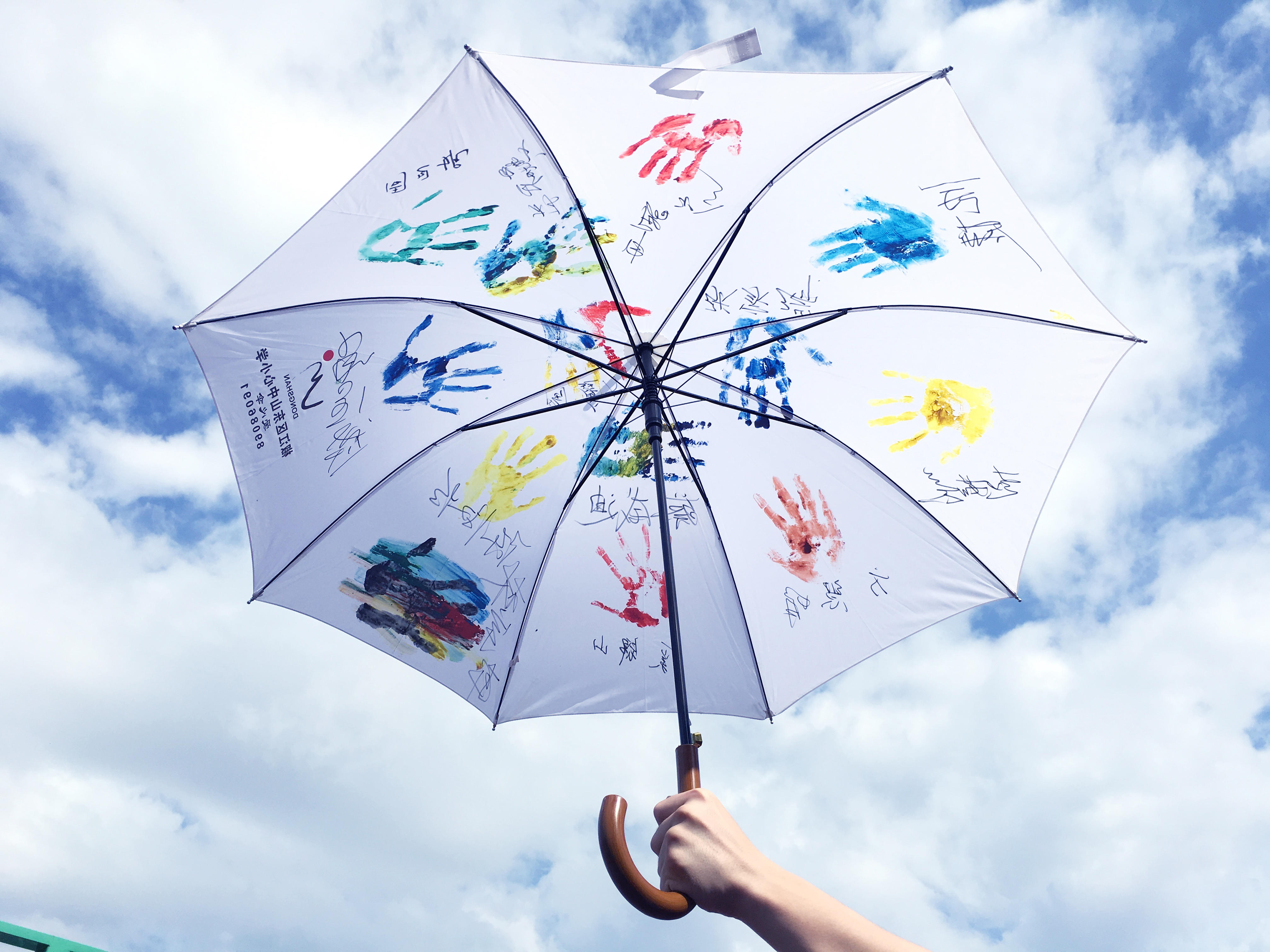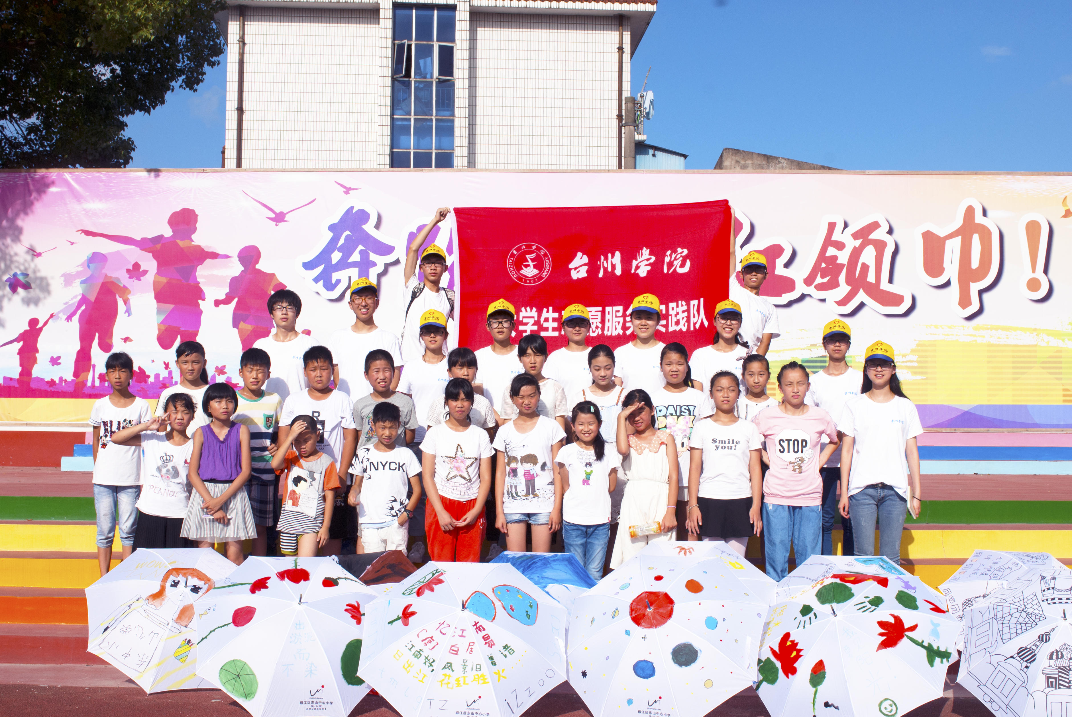 闲看云卷云舒,专属于天空的那份湛蓝似乎将要被烈日所打败,阳光灼眼,暑气蒸人。为增强小员工们的动手动脑能力以及DIY设计能力,给他们的生活注入新的艺术元素和新鲜活力,7月6日下午,“知心支教”暑期社会实践队为东山中心小学的员工们举办了一场DIY设计大赛——小白伞上的小小梦想。