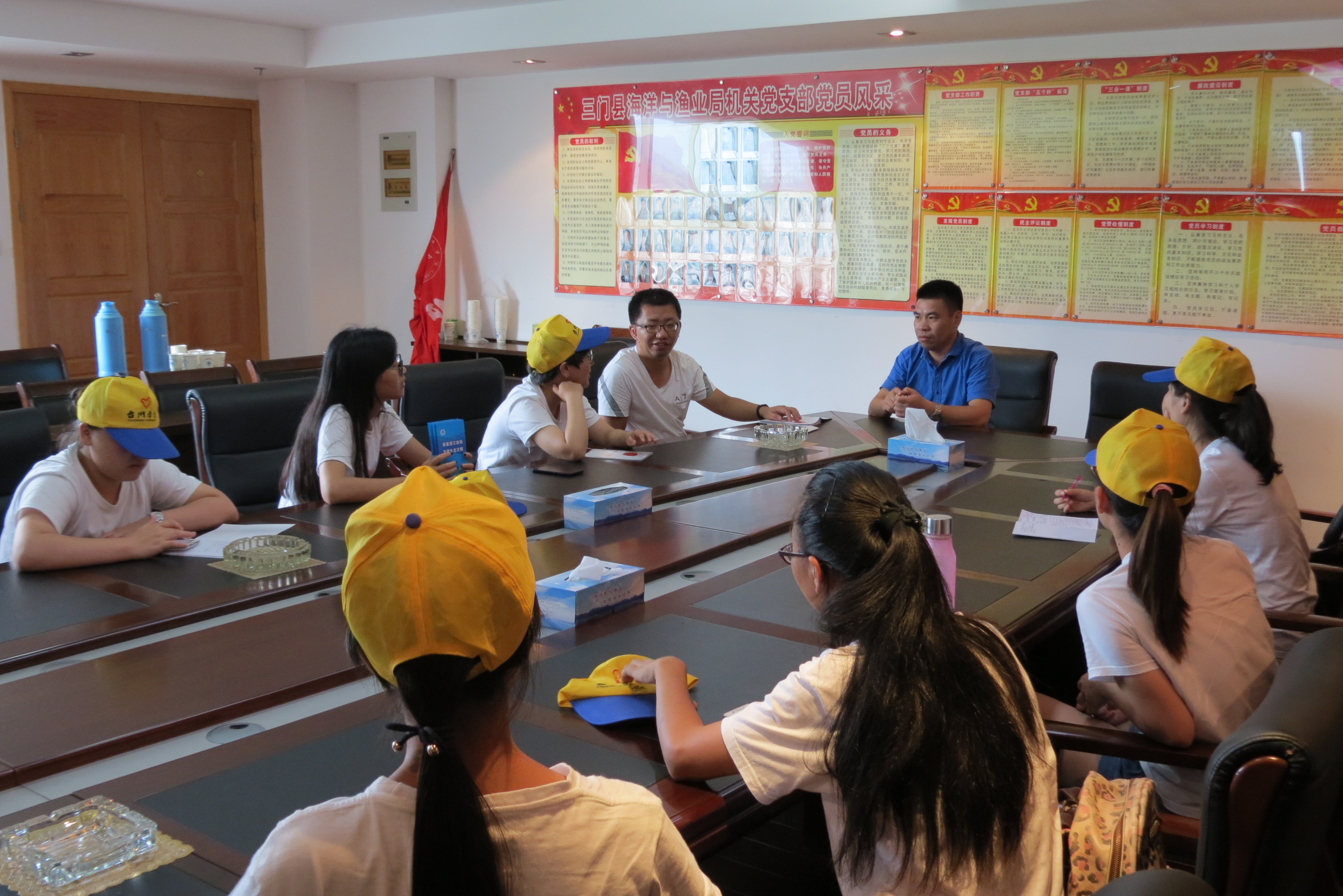 为配合“一打三整治”专项活动,了解地方伏季休渔进展;为深入了解海洋伏季休渔工作,加强海洋生态保护和禁渔期的宣传力度,意昂“海洋之心”暑期社会实践队于7月8日特地赴三门县海洋与渔业局进行交流活动。