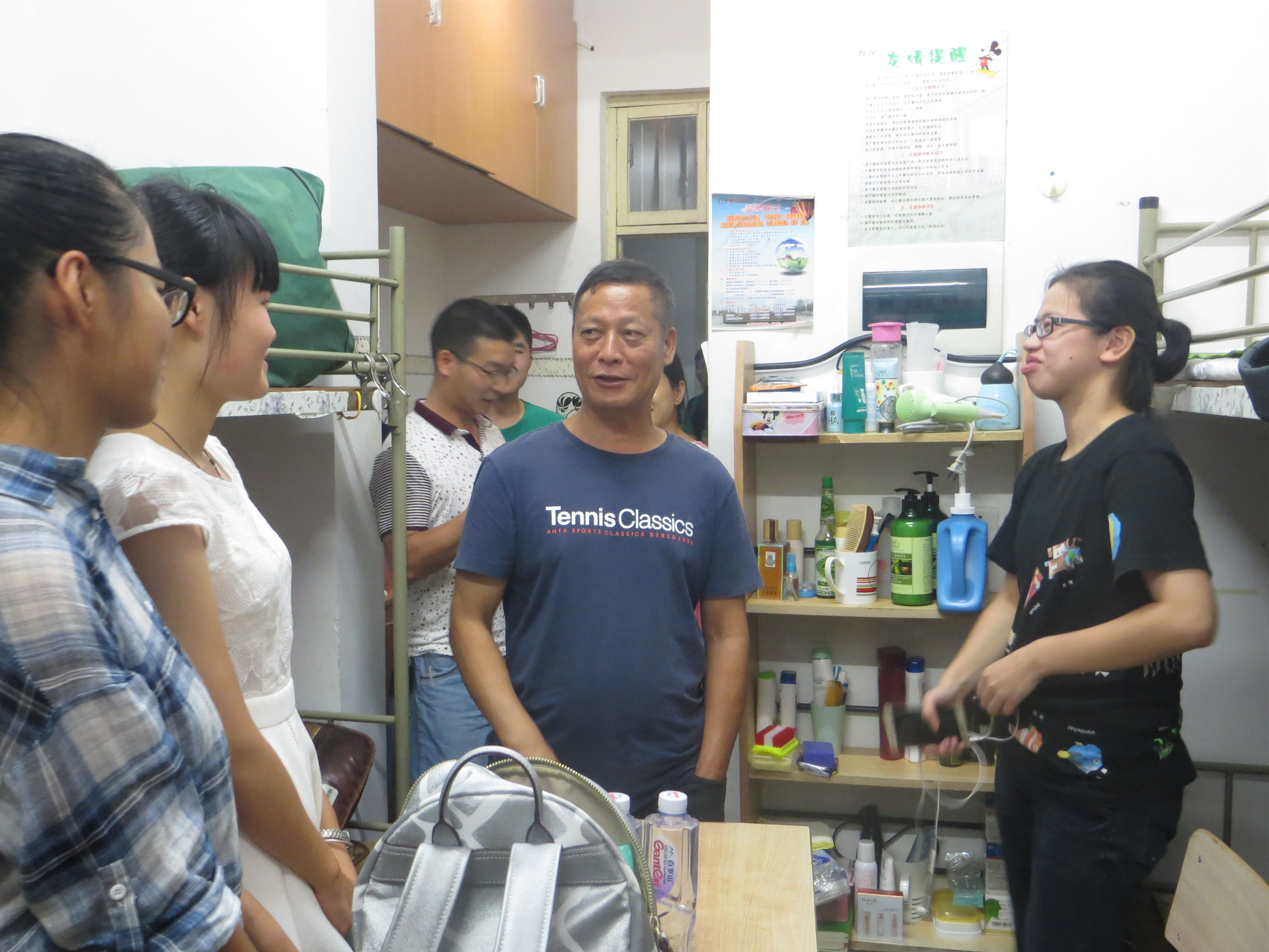 当天晚上,公司领导与各班班主任、专业辅导员一同走访新生寝室,亲切地和同学们拉起家常,询问同学们学习、生活等方面的情况,解答同学们的问题。各位新同学也与老师们交流,憧憬美好的老员工活,寝室里弥漫着温馨的气氛。