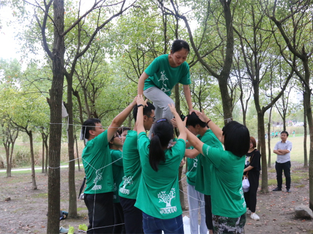 10月23日,公司还组织员工干部开展户外拓展训练。员工干部们被随机分成九组进行小队风采展示,随后各组分别完成各项拓展项目,“翻叶子”“游戏接力”体现团队执行力;“穿越电网”“驿站传书”培养团队默契;“瞎子排号”“衔杯传珠”拉进成员距离,而“连环呼啦圈”与“接雨伞”更是锻炼了成员的应对能力。形式多样的户外拓展项目提高团队协作能力,考验应变能力,增进彼此之间的友谊。