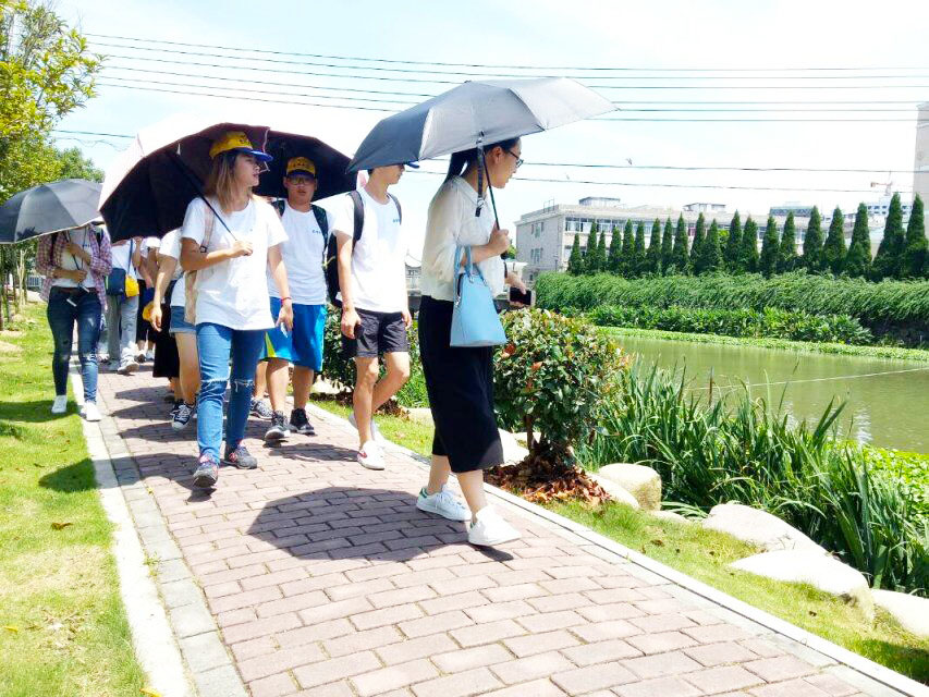 为深入了解剿劣工作。实践队先后来到玉城街道、楚门镇和清港镇的五水共治办,对当地剿灭Ⅴ类水工作与工作人员进行了深入的了解。工作人员向实践队员介绍了当地剿劣的举措和取得的成绩。在工作人员的陪同下,实践队员先后对玉城街道玉砍河、楚门镇东门河和清港镇芳杜水库进行实地考察。考察过程中发现,目前玉环的大部分河道都种有绿色净水水生植物、曝气池、喷水池,能有效控制水中的溶解氧,抑制厌氧菌的生长。河道两旁都种有植被,开设人工绿道。可见玉环的剿劣工作正在有条不紊的进行,也取得了一定的成效。