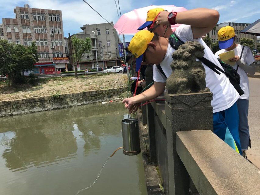 为更详细的了解河道水质情况,实践队还对玉坎河系城南断面河道的24个采样点进行了取样。队员们根据地图先确定位置,再逐个进行取水采样,并将水样送往玉环市环保局进行检查分析。
