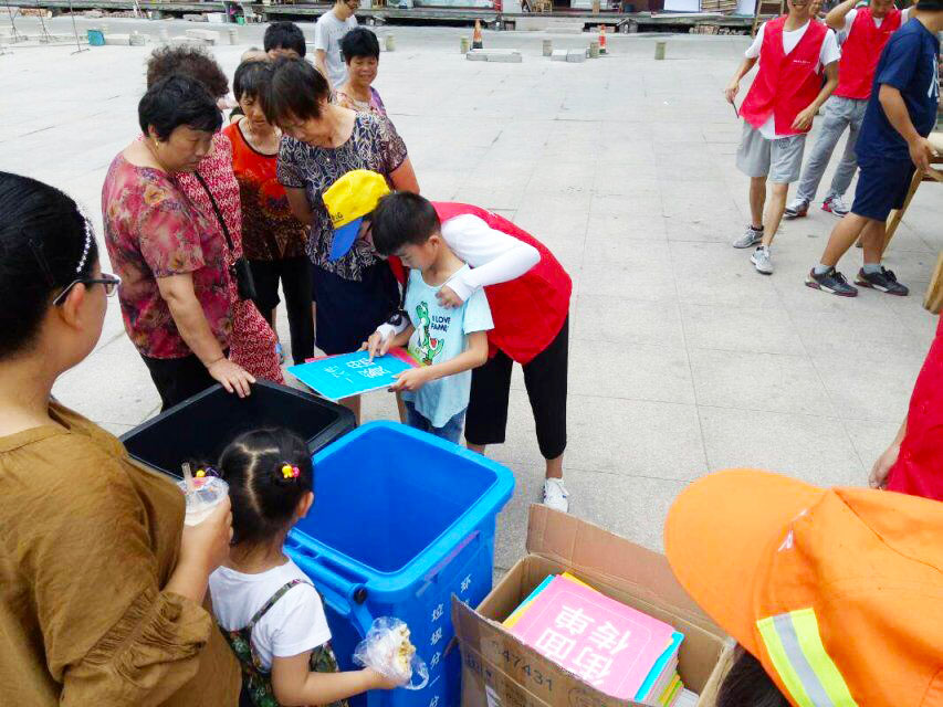 在实践活动的最后一天,实践队参与了玉城街道团队举办的垃圾分类试点宣传活动,进行现场和入户宣传,教居民们区分可腐烂和不可腐烂垃圾,呼吁他们要进行垃圾分类。