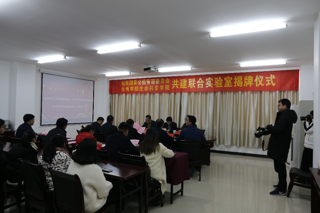 仙居县委常委、仙居国家公园管理委员会党组书记王勇军发表讲话,他介绍了仙居国家公园的概况和国家公园在生态建设、生物多样性保护方面所取得的成绩。针对双方下阶段的深化合作,王勇军提出三点建议:一是要在科研学术上加强合作,双方可以探索构建一份研究性、操作性较强的课题库,按年度计划开展调研;二是要在人员交流上加强合作,探索构建常规化的人员交流制度,双方可以每年互派人员进行挂职锻炼,推动资源共享、取长补短、共同进步;三是在实践教育上加强合作,探索建立一个生态科研和环境教育的实践基地,公司可以每年安排部分员工和老师开展社区环境教育实践课程,共同助力生态绿色理念的普及和推广。随后,双方举行签约仪式和揭牌仪式,并一同参观了省植物进化生态学与保护重点实验室。