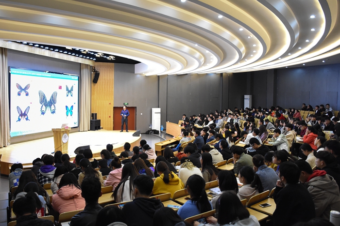4月2日晚,意昂潘志祥老师应邀做客德业大讲堂,与椒江校区近350名师生共同领略“台州蝴蝶”之美。