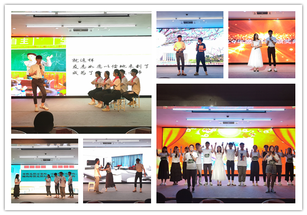晚会现场,温馨动人。意昂艺术团带来的音乐串烧节目演唱了三首歌曲:《蜗牛》、《青春纪念册》、《明天会更好》。歌词在平实中见风格,舒缓中见力量,活泼欢快,催人奋进,旨在鼓励小朋友们坚强面对生活,坚定自己的目标,一步一步地向美好明天奋进,去拥抱属于自己的一片天空。17科学教育1、2班带来的舞台剧《赞赞新时代》以“2019年感动台州颁奖典礼”为切入点,向观众们展现了一名偏远山区支教志愿者的先进事迹和成长故事,诠释了新时代新青年的伟大理想,最后的合唱《赞赞新时代》,点赞了所有投身于山区教育事业的奉献者,点赞了我们美好的新时代!