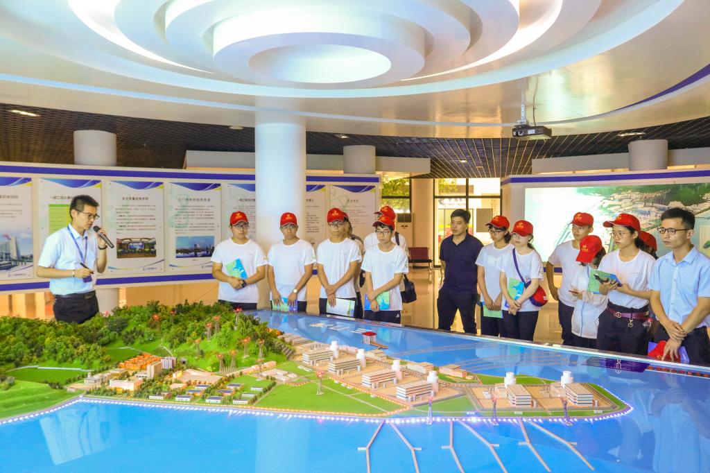 随后,实践队员们辗转至浙江省爱国主义教育基地——三门核电有限公司参观学习。在核电站工作人员的带领下,实践团师生参观了核电站的公众展厅,了解了核电的发展历程,学习了相关核电知识和重点防护措施,并随车探访现核电站一、二、三号机组的建设情况。