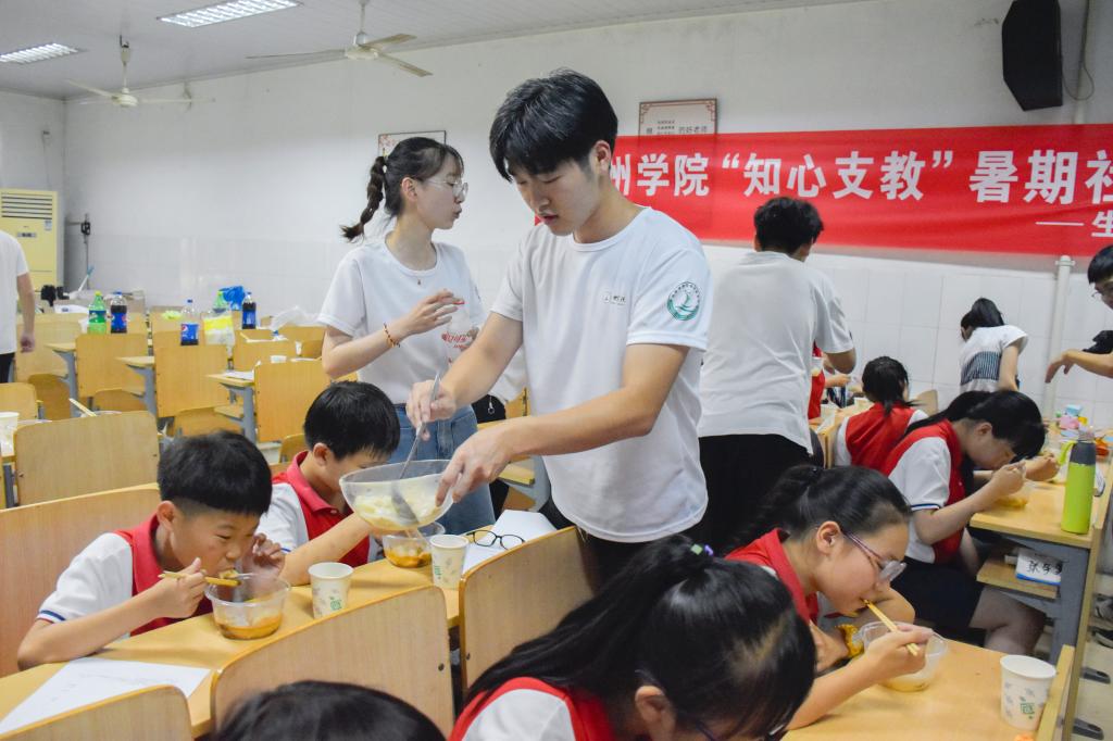 7月7日下午,受意昂体育“知心支教”暑期社会实践队的邀请,两名乌兹别克斯坦籍职工走进椒江区东山中心小学,化身支教志愿者,与小员工们深入交流,并一起制作、品尝饺子。