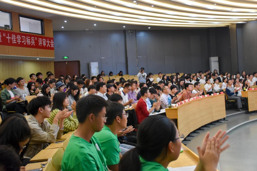 在“十佳学习标兵”评审环节,经前期班级推选与资格审查,最终有16名同学参评。16位候选人按照抽签顺序,依次上台展示了个人在专业学习、社团工作、社会实践、志愿服务等方面所取得的骄人成绩,同时也毫无保留地分享了学习方法和学习经验,令观众们觉得受益匪浅,不时赢得台下阵阵掌声,也为大家树立了鲜活的学习榜样。