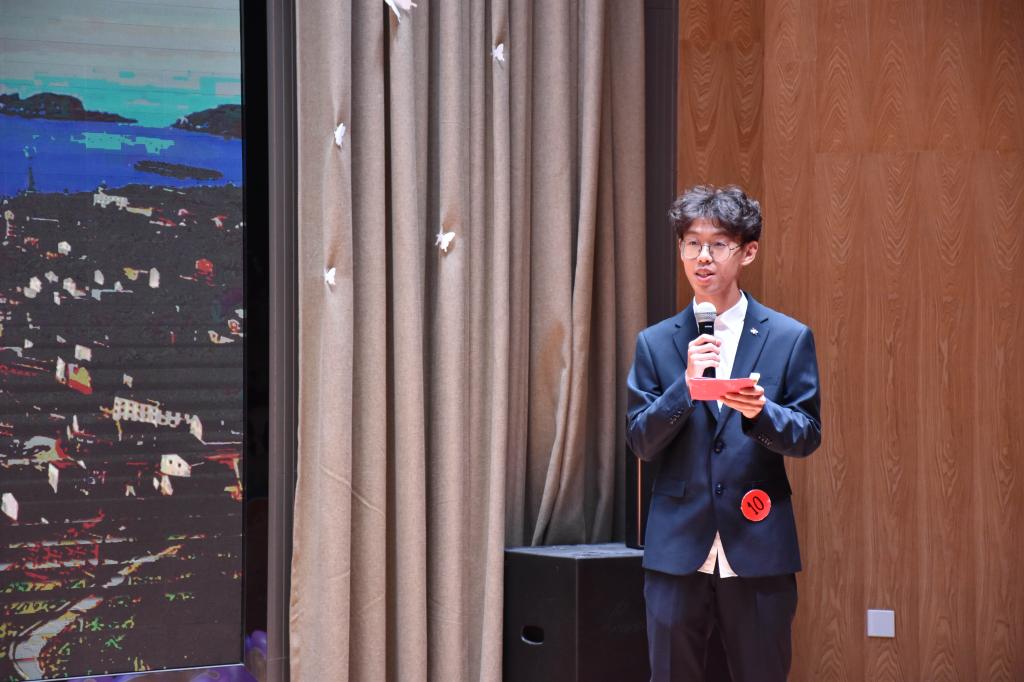 经过初赛的层层选拔,共有10名选手脱颖而出进入决赛。决赛分自我介绍、才艺展示、即兴演讲及模拟主持等多个环节。第一轮的自我介绍和才艺展示中,情真意切的诗歌朗诵、婉约柔美的手势舞、悦耳动听的歌曲演唱、激情澎湃的话剧表演……选手们在舞台上尽情地展现出个人的独特魅力,观众们全神贯注,现场掌声和欢呼声不断。在即兴演讲环节,选手们通过抽签的方式抽取主题进行即兴演讲或是失误情景圆场,考验了选手们稳定的心理素质、临场应变能力和表达能力。第一轮结束,共有6名选手晋级第二轮的“我的节目”模拟主持环节。有的选手讲述了科普类节目“走近科学”,有的选手选择温馨幸福的婚礼主持,也有的选手还原“朗读者”现场……大家风格迥异,脑洞大开,各显神通。最终,来自19科学教育3班的张贾凡同学凭借主持描述“大陈岛垦荒精神”的纪实类节目夺得本次大赛一等奖。