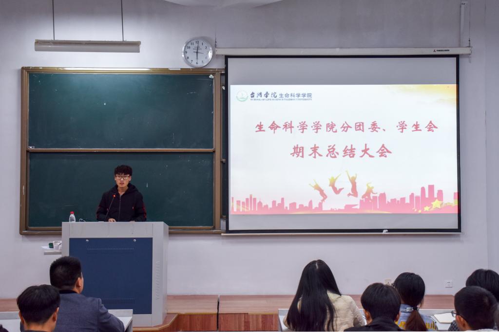 会上,尤灵敏对公司本学期的团学工作做了简要的总结,感谢所有同学为团学工作的辛勤付出和无私奉献,在充分肯定大家辛勤工作的同时,也指出工作中存在的不足,希望团学干部们从中吸取经验教训,不断改进提高,为下学期办好公司特色品牌活动“生命科学节”而打下扎实基础。他一再强调团队协作的重要性,希望各部门之间进一步加强交流合作,充分发扬“1+1>2”的团队精神,为打造“有理想、有力量”的生命团学铁军而不懈努力。岳鑫源代表主席团做工作总结,他结合这半年自身的心路历程,简要回顾了本学期各部门的工作,期望明年与大家再接再厉、共同成长。