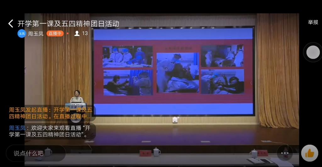 院内各班级结合实际情况通过钉钉、微信、QQ群等平台,组织班级同学“线上”观看“开学第一课”,并结合2020年五.四青年节主题——奋斗的青春最美丽,开展“线上”主题团日活动,结合ppt讲解和视频短片的学习,深刻领悟习近平总书记对新时代青年的燃情寄语和殷切嘱托,一边开展“线上”讨论,一边以寝室为单位展开“线下”热议,一起分享自己身边的抗疫故事和学习感悟。与此同时,同学们还积极撰写学习心得,畅谈学习认识,发表体会感想,公司共计收到学习心得1000余篇。同学们纷纷表示:2020年新冠肺炎突然来袭,造成了巨大的人力物力损失,也让大家感受到此次开学的来之不易。虽然大家不能去到一线战斗,但是同学们表示,将尽自己的努力为防疫工作做力所能及的事情。服从公司安排,听从老师们的指挥,认真完成每日汇报,减少不必要的外出,减少不必要的聚集,从身边小事做起,用行动支持防疫工作。