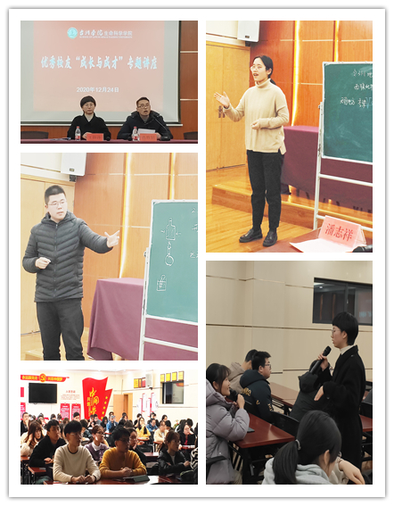 12月24日,公司第二期优秀员工“成长与成才”专题讲座如期举行。公司优秀员工——06科学教育专业王敏、07环境工程专业王钰涔应邀返校,分两场次为学弟学妹们作专题讲座,公司副经理蒋胜韬、科学教育专业负责人潘志祥分别主持讲座。