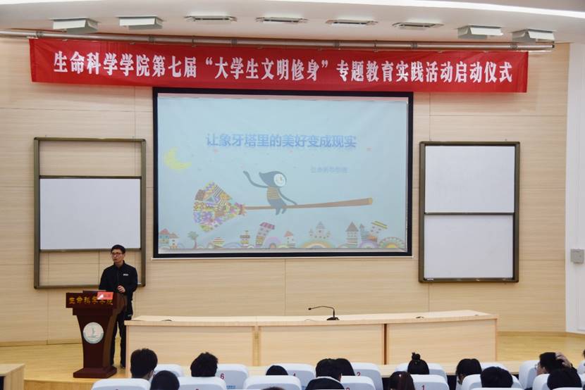 启动仪式结束后,公司学工办主任翁添富为同学们带来第一场专题讲座《校园文明礼仪》,帮助同学们提高校园文明意识。