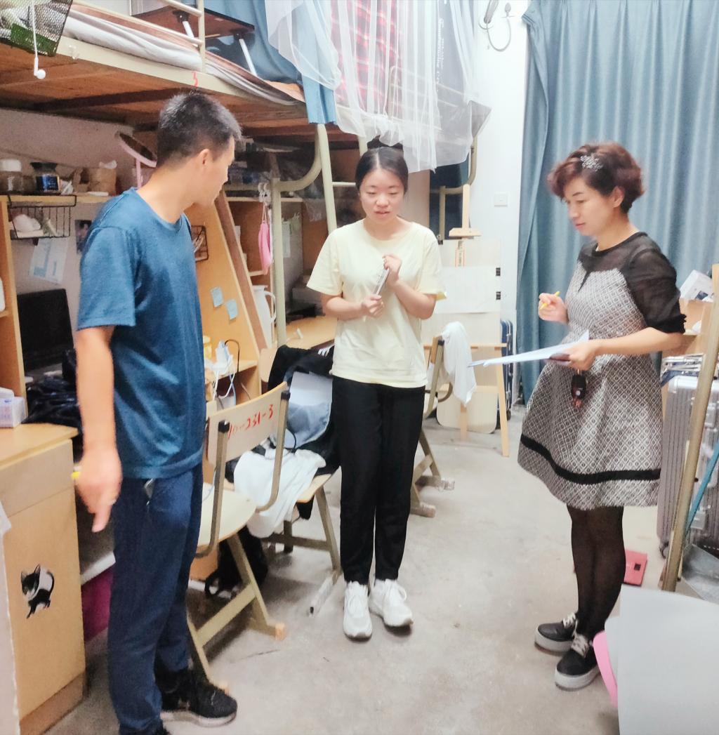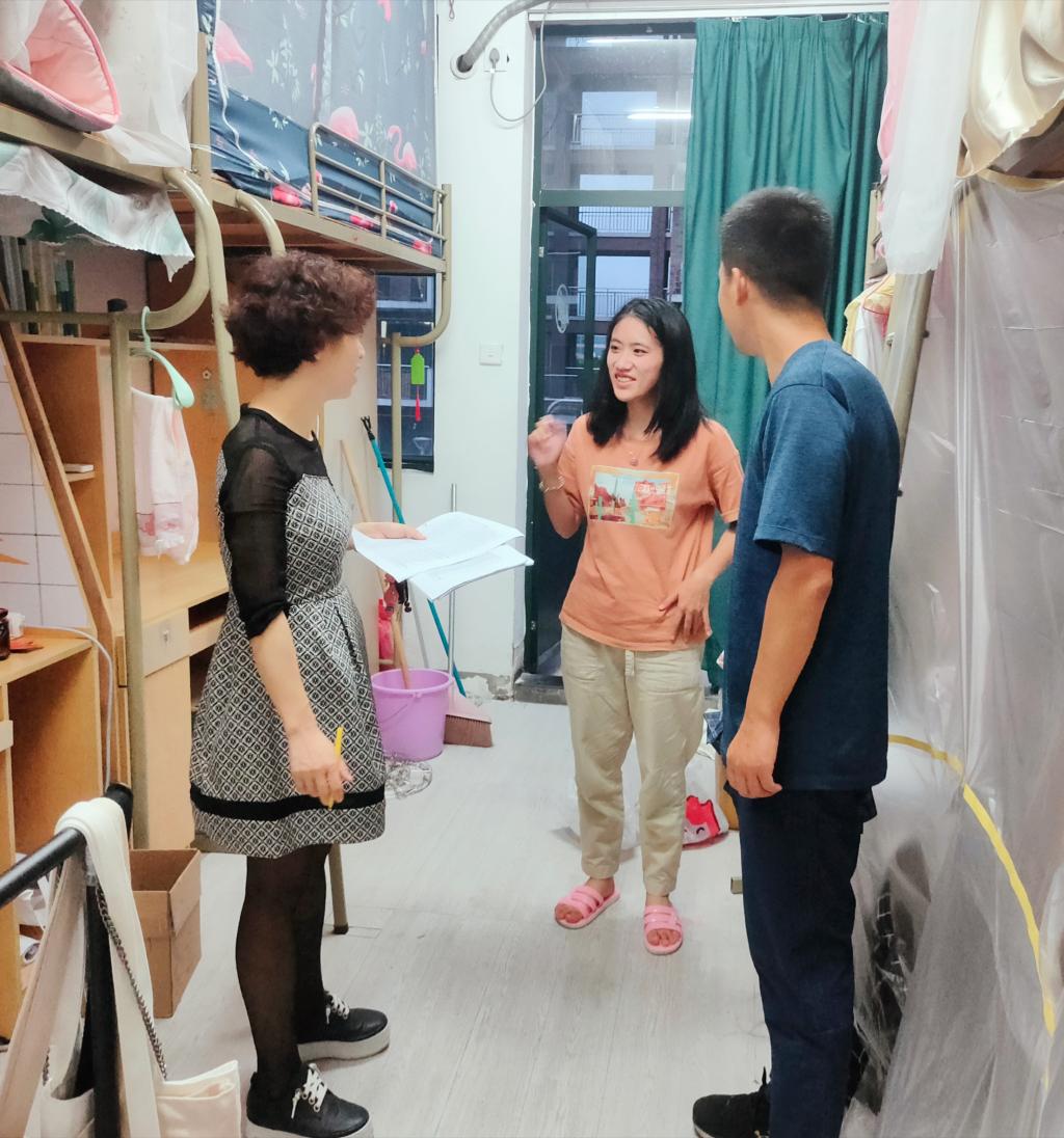 徐敏和张本金对分别对女生寝室和男生寝室进行逐一走访和检查,深入了解了留校员工的暑期安排和思想动态,仔细询问了大家关于食物、饮用水和电器蓄电等方面的准备情况,检查了寝室内外各项设施是否牢固、宿舍门窗是否关紧、阳台和天台是否有易坠物品,并对发现的安全隐患进行现场协调和解决。