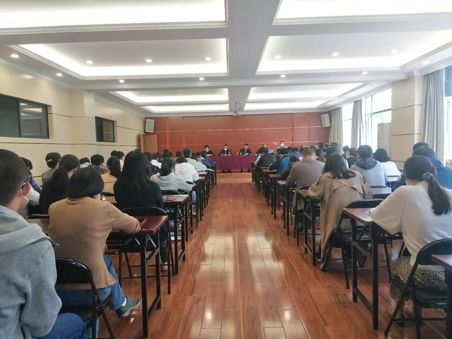 5月11日正值线下复课的第一天,公司党总支书记柯世省、副经理蒋胜韬、副经理付永前、副书记徐敏以及教务员、辅导员们,一起深入课堂,巡查教师到岗、员工出勤、课堂纪律和教室通风等方面的情况。此次学风专项巡查结果总体情况较好。师生精神状态饱满,教师认真授课,员工仔细记录,教室通风良好,员工隔位就座,课堂秩序井然。非毕业班除极个别员工因事请假尚未返校外,其他员工全部返校上课,此次巡查课堂出勤率达到10...