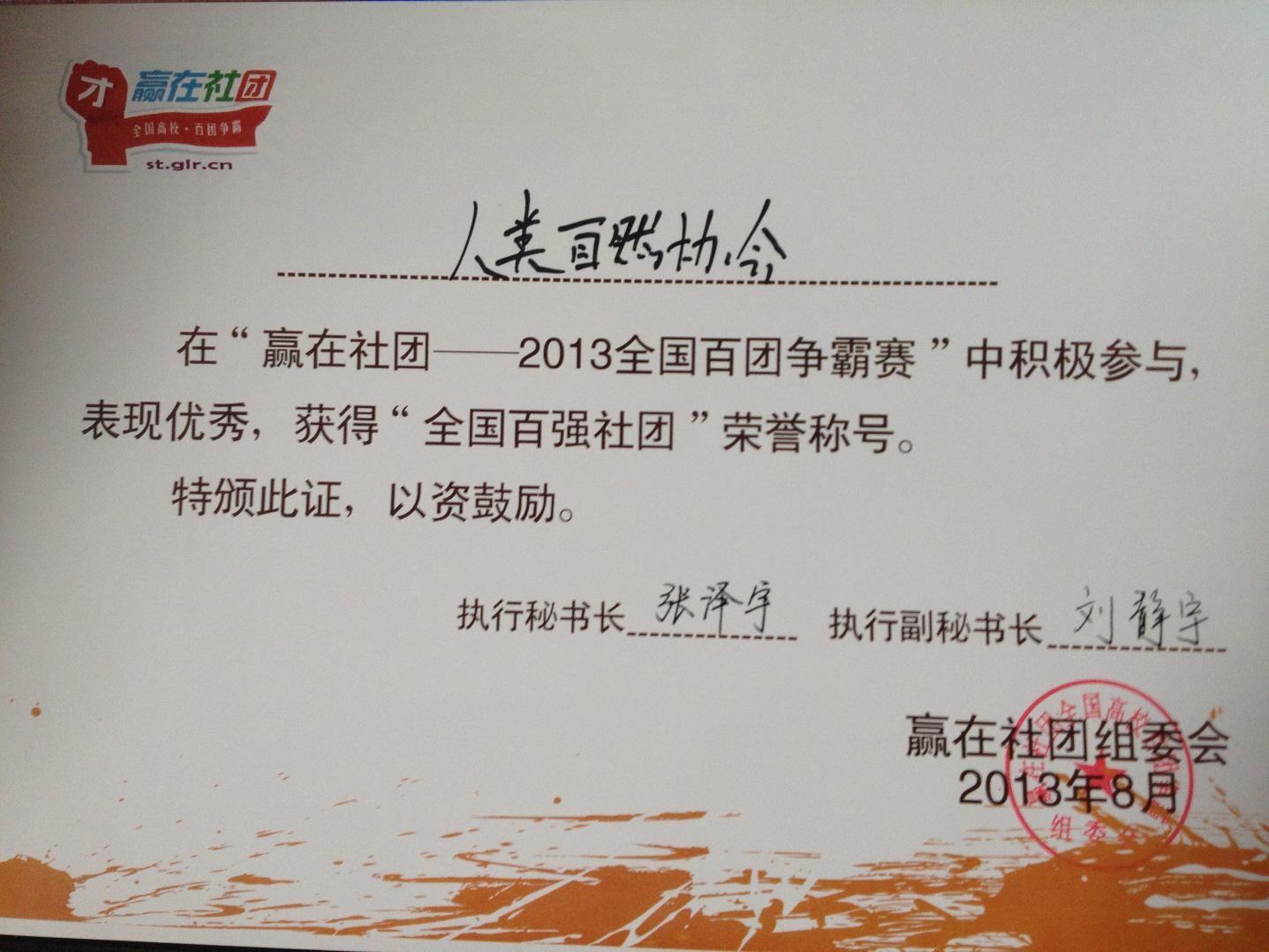 近日,由国际老员工职业发展联盟(Career Insider Club)“赢在社团”组委会主办,北京大学就业创业辅导中心承办的“赢在社团,2013全国高校百团争霸赛”评选活动结果揭晓。意昂人类自然协会不负众望...
